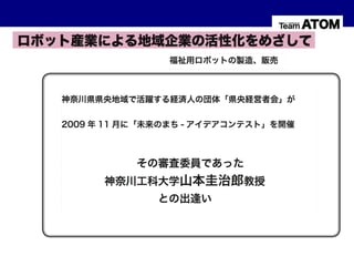 「厚木で生まれた介護ロボット」 平成24年5月10日 有限責任事業組合LLPアトムプロジェクトアトム 浜辺俊也 第 4 回NSP投資銀行研究会