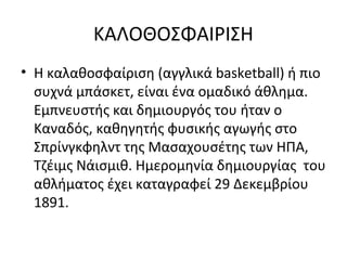 • Η καλαθοσφαίριση(αγγλικά basketball) ή πιο