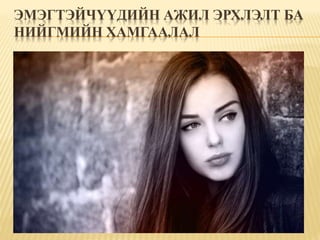 Similar to эмэгтэйчүүдийн ажил эрхлэлт ба нийгмийн хамгаалал