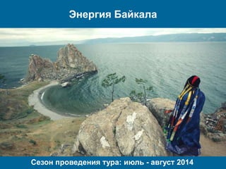 Тур 'Энергия Байкала' в июле-августе 2014 года предлагает насыщенную программу путешествий по озеру Байкал. Участники посетят живописные места, познакомятся с бурятской культурой и насладятся расслабляющим отдыхом на Ольхоне и в Усть-Баргузине. Программа включает различные экскурсии, водные поездки и возможность попробовать традиционные блюда местной кухни.