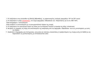 1. Ν’ αναζητήσετεστην ιστοσελίδα της Εθνικής Βιβλιοθήκης τις ψηφιοποιημένες συλλογές εφημερίδων 19ου και 20ου αιώνα.