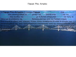 Η Γέφυρα Ρίου-Αντιρρίουή επίσημα Γέφυρα Χαρίλαος Τρικούπης, είναι καλωδιωτή