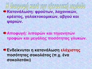 η διατροφή του μαθητή κατά την εξεταστική περίοδο 1. 2. Κατανάλωση: φρούτων, λαχανικών,