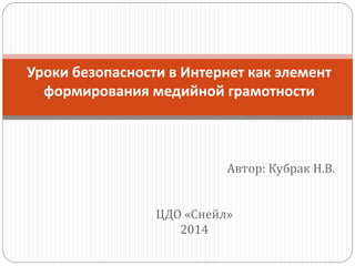 Документ обсуждает важность медийной грамотности и безопасности в интернете, предлагая различные формы работы со школьниками, такие как уроки, игры и викторины. Упоминаются примеры мероприятий и онлайн-конкурсов, направленных на обучение основам безопасного интернет-серфинга. Также представлены ресурсы и курсы для педагогов по вопросам авторского права и интернет-безопасности.