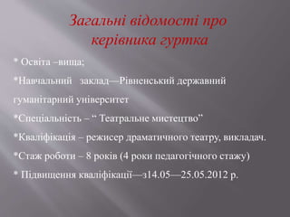 *Стаж роботи – 8 років (4 роки педагогічного стажу)