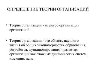 ОПРЕДЕЛЕНИЕ ТЕОРИИ ОРГАНИЗАЦИЙ