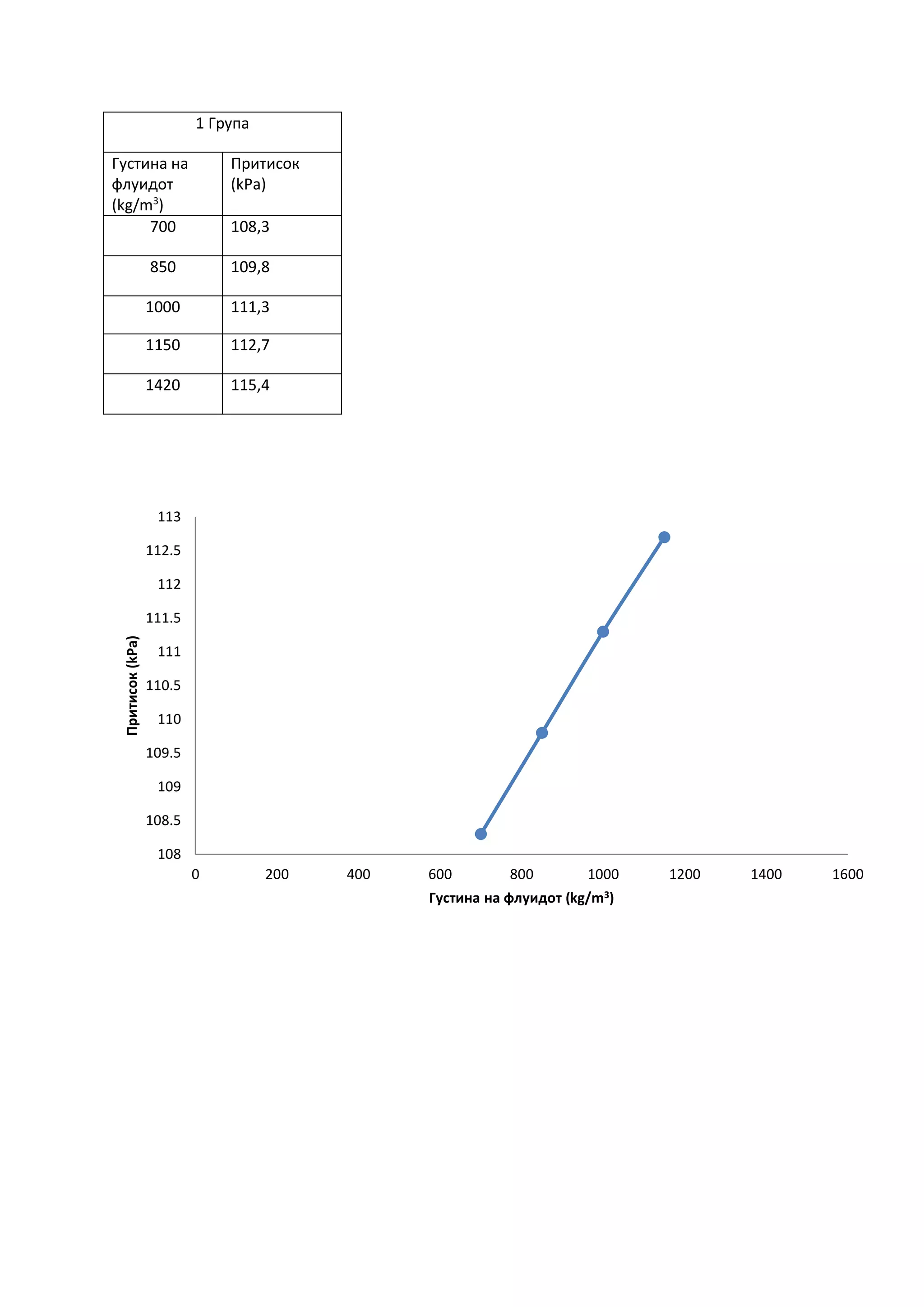 Документ содержит таблицы, показывающие зависимости густоты флуидов от притиска для шести групп. Для каждой группы указаны значения густоты в зависимости от давления, а также данные о глубине и превышении давления для некоторых групп. Изложенные данные имеют важное значение для анализа свойств флуидов в различных условиях.