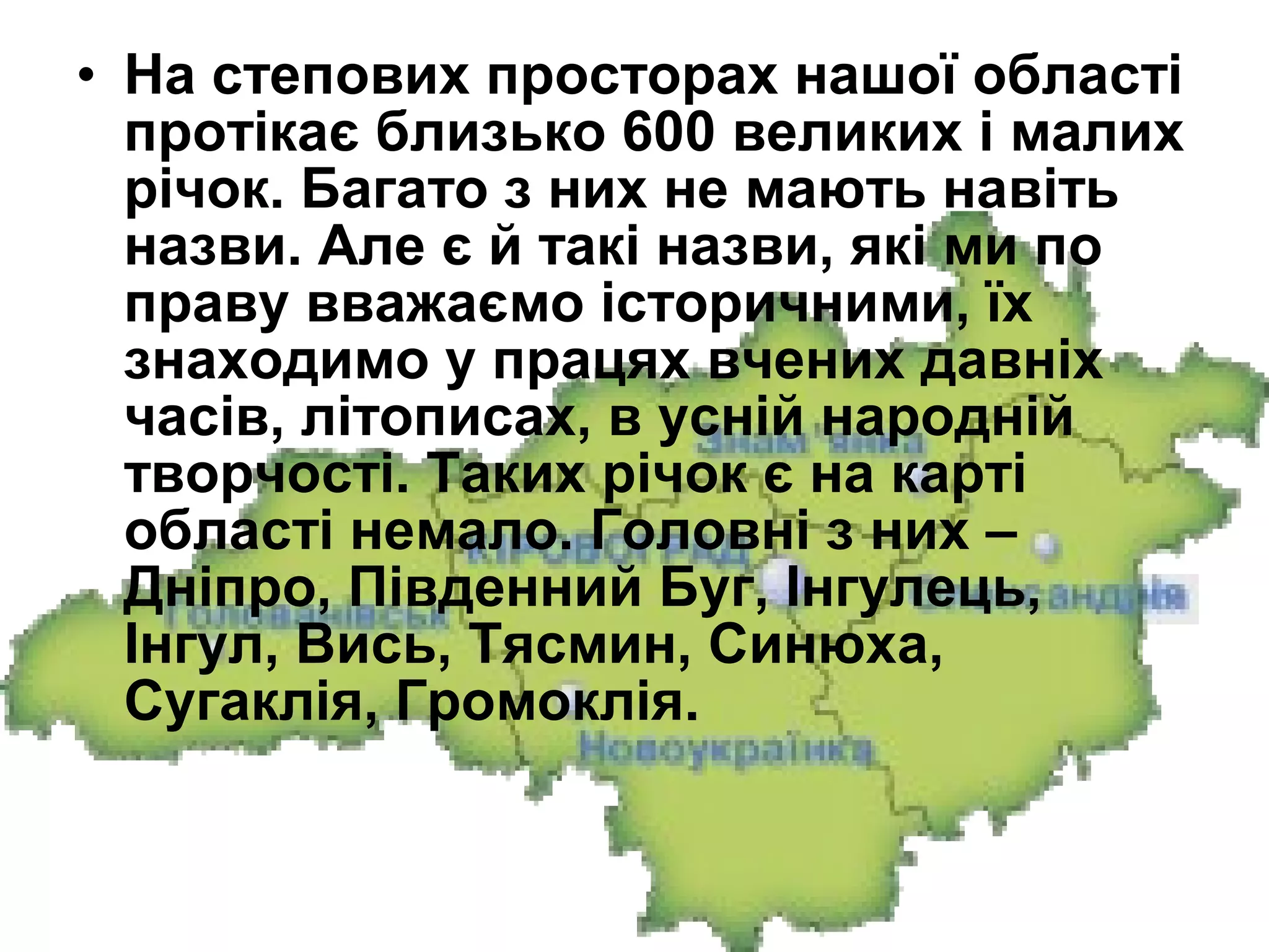 • На річці побудовано кілька водосховищ: Кіровоградське,