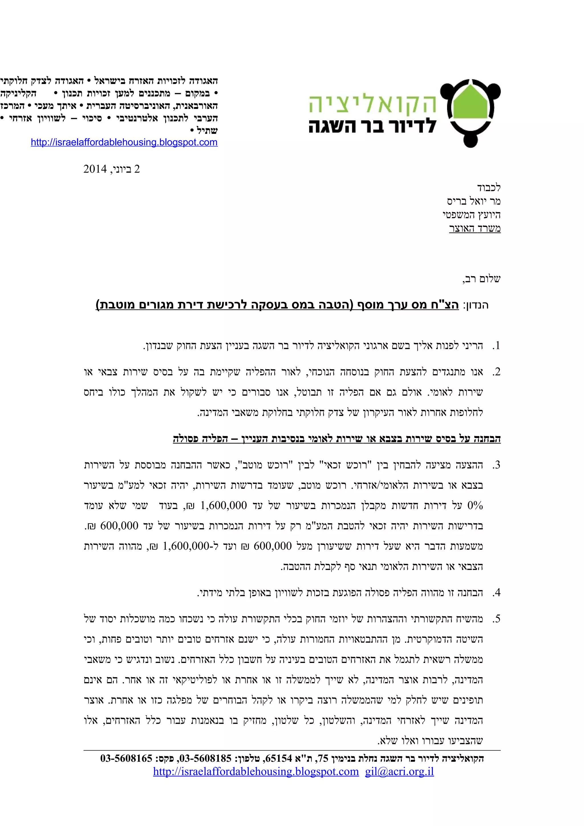 http://israelaffordablehousing.blogspot.com gil@acri.org.il