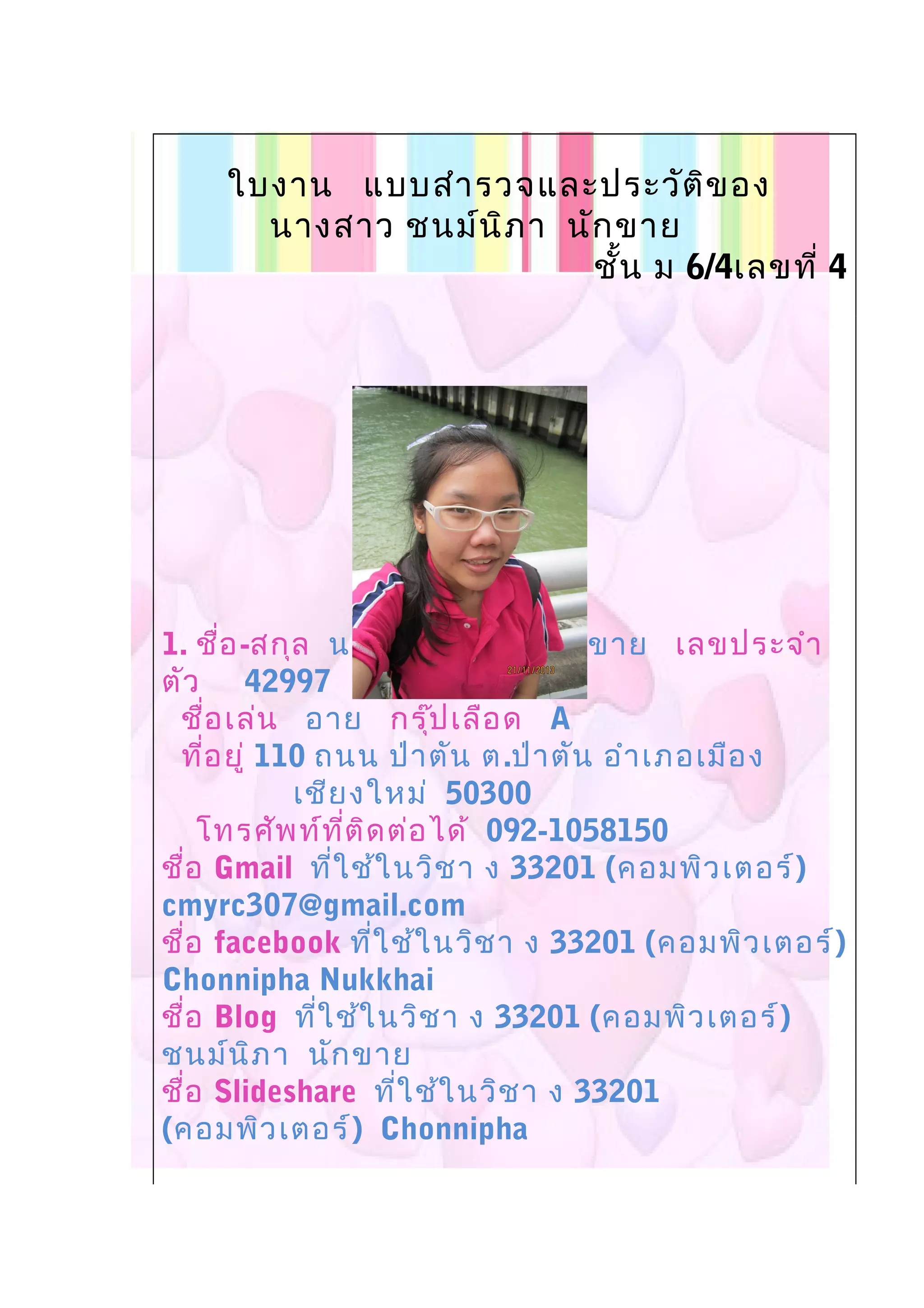 1. ชื่อ-สกุล น.ส. ชนม์นิภา นักขาย เลขประจำา
