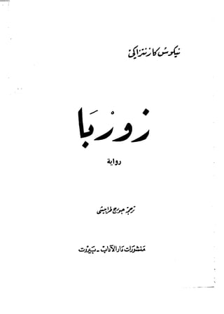 رواية زوربا تعتبر رواية زوربا من الروايات القليلة فى الأدب العالمي التي تجعل القارئ يتشرب من خبرات الحياة فهي تنقل للقارئ عن طريق الاحداث وعن طريق الحوار بين الأبطال والمواقف التي يتعرضون إليها خلاصة المعرفة التي تأتي من الكتب بإلاضافة إلى الخبرات التي تأتي من المواقف الكثيرة التي مر بها بطل الرواية و لقد حاول نيكوس كازانتزاكي عن طريق بطلي ان يوصل إلينا هذا المعنى فالبطل الأول هو شاب في مقتبل العمر قرأ الكثير من الكتب حتى كانوا رفاقه يلقبونه بدوده الكتب واصبح لديه كم رهيب من المعرفه التي تصور أنه يمكنه ان يواجه العالم بها ,اما البطل التانى زوربا وهو محور الرواية فهو رجل فى الستين من عمره ولكنه يملك قلب شاب جامح مغامر وجرئ ومشبع بخبرات الحياه