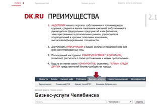 Документ описывает преимущества бизнес-услуг компании для различных целевых групп, включая собственников и менеджеров. Он подчеркивает доступность информации о предложениях, инструменты взаимодействия с клиентами и включает мероприятие, которые могут повысить видимость компании. Также упоминается, что компания может получать заказы через портал, благодаря удобной навигации по услугам.