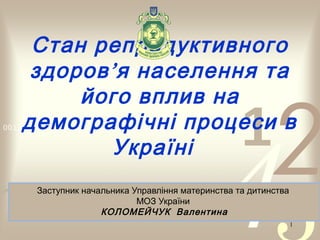 Стан репродуктивного здоров’я населення та його вплив на демографічні процеси в Україні