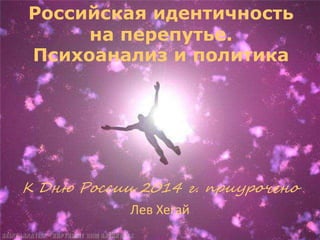 Документ рассматривает российскую идентичность на фоне политических и исторических событий, включая присоединение Крыма в 2014 году. Он анализирует влияние западного либерализма и психоанализа на общественное сознание и формирование идентичности. Также обсуждаются философские идеи о свободе, индивидуальности и социо-дарвинизме как основах культурного и социального развития.