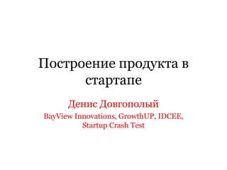 Документ обсуждает концепции построения продукта в стартапах, акцентируя внимание на различиях между традиционным и гибким подходами к разработке. Автор выделяет важность гипотез, экспериментов и анализа для успешного продвижения продукта, а также акцентирует внимание на ключевых характеристиках, таких как юзабилити и качество. В заключение предоставляются рекомендации по тестированию и улучшению функционала продукта.