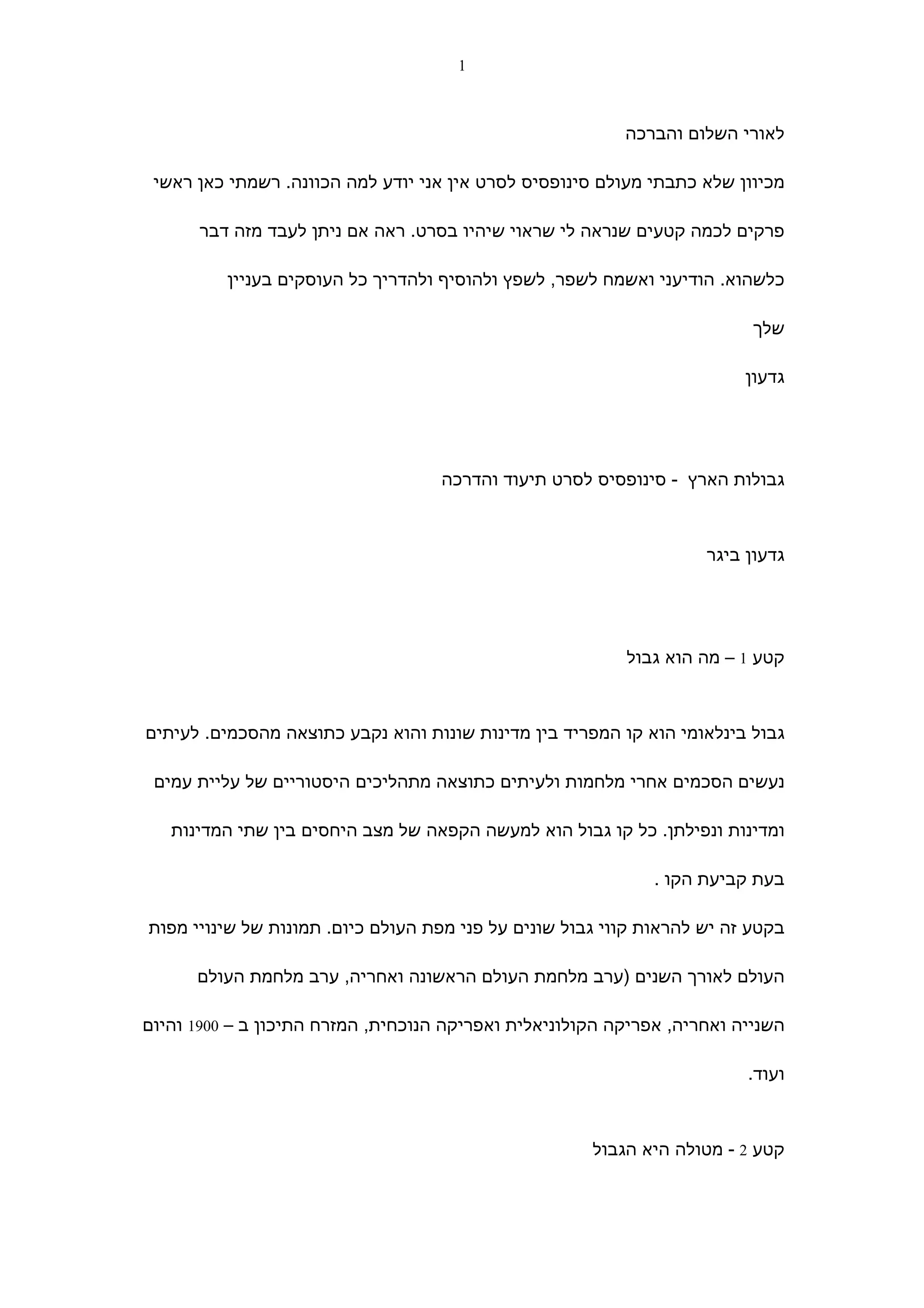 גבולות הארץ - סינופסיס לסרט תיעוד והדרכה