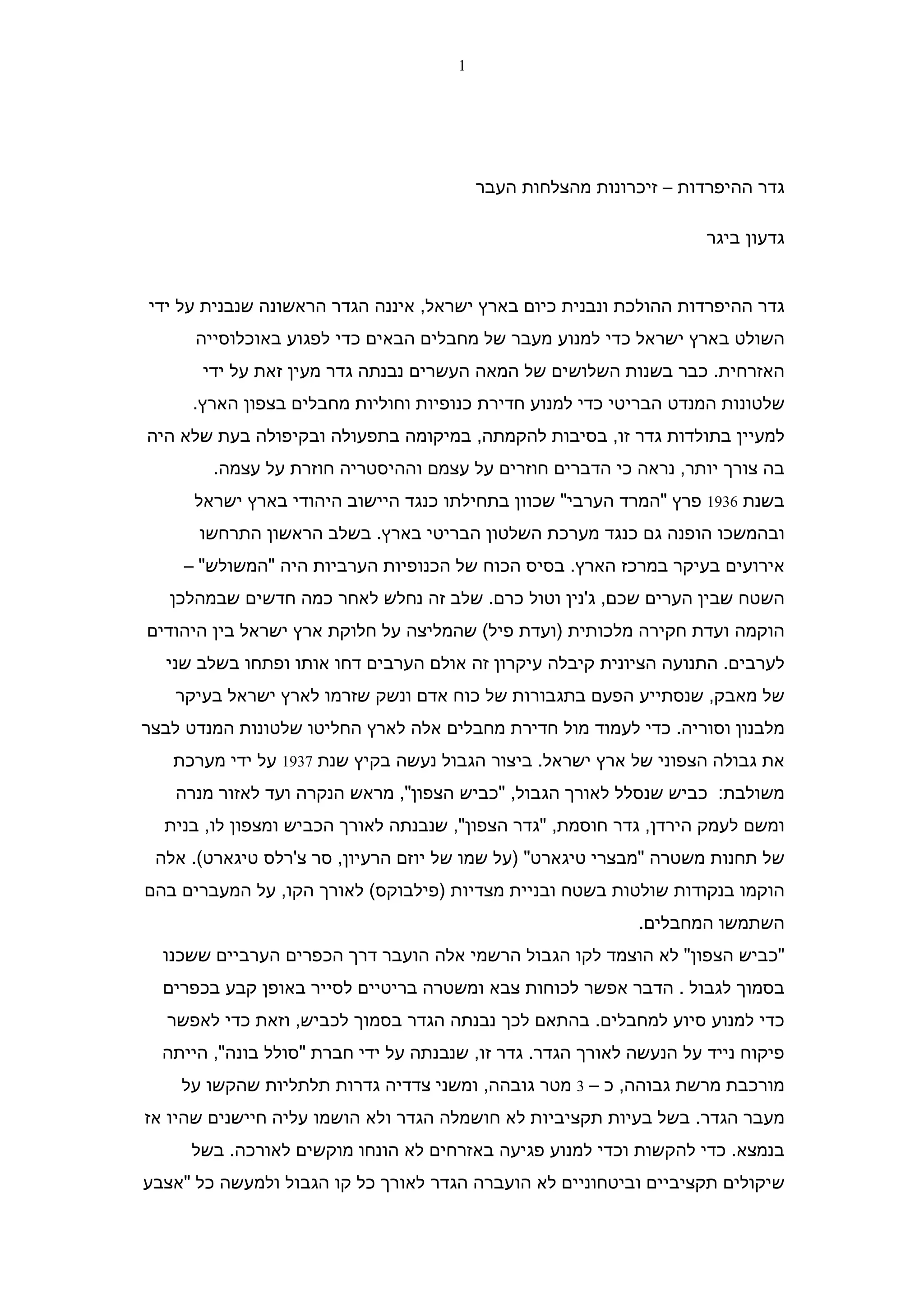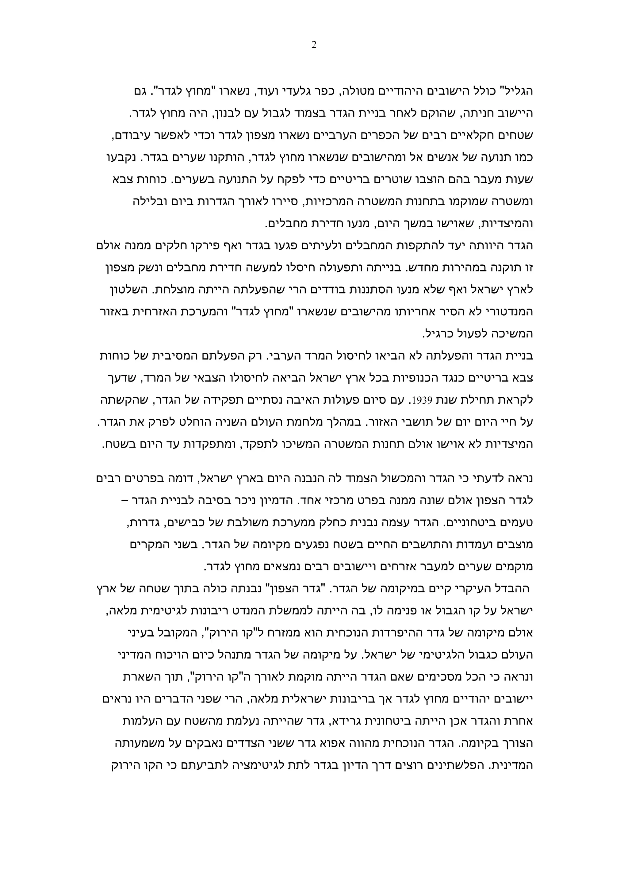 הצורך בקיומה. הגדר הנוכחית מהווה אפוא גדר ששני הצדדים נאבקים על משמעותה