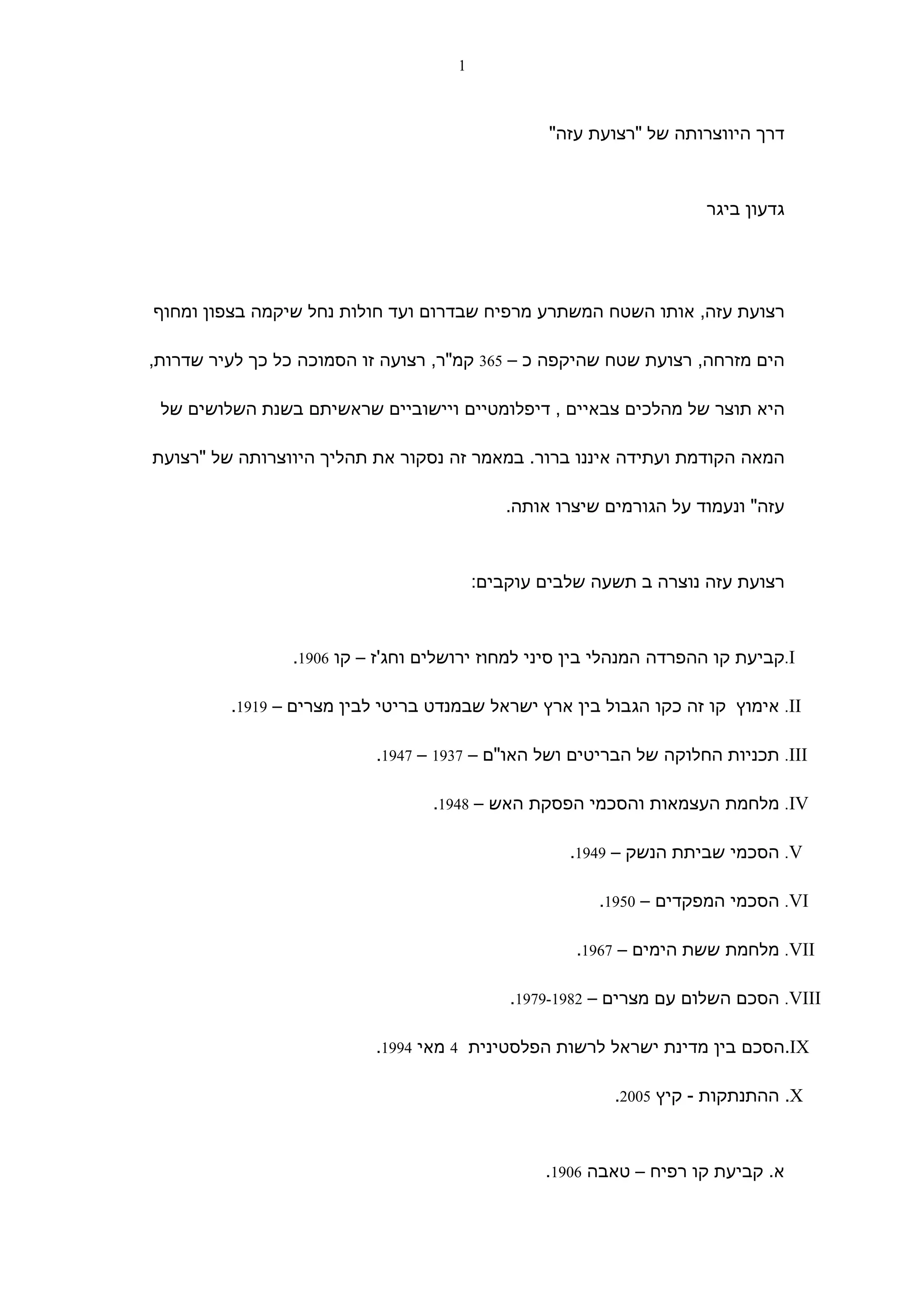 המאה הקודמת ועתידה איננו ברור. במאמר זה נסקור את תהליך היווצרותה של "רצועת