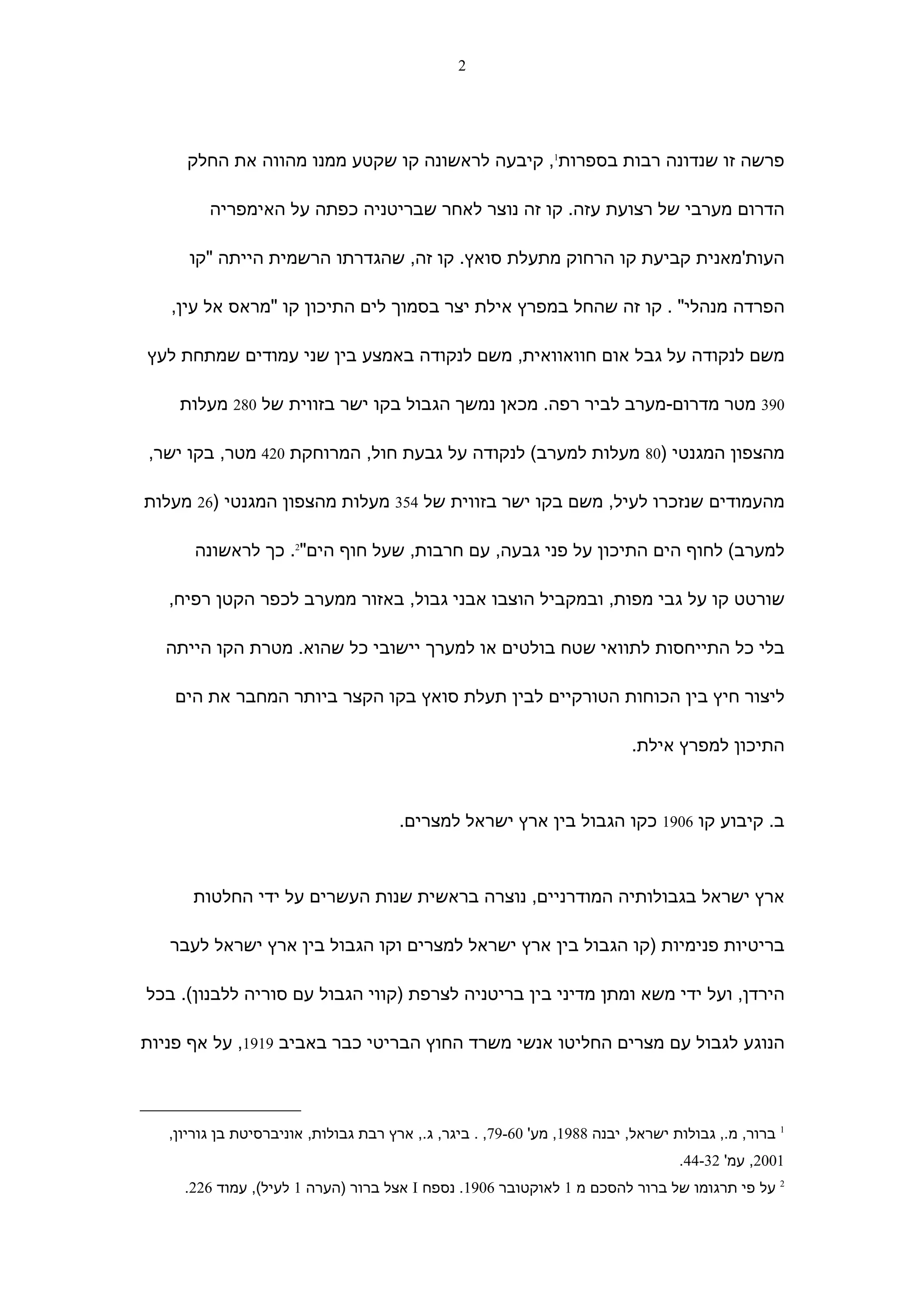 3 על פרשה זו ראה ביגר, ג., לבעיית קביעת הגבול הדרומי של ארץ ישראל לאחר מלחמת העולם הראשונה,