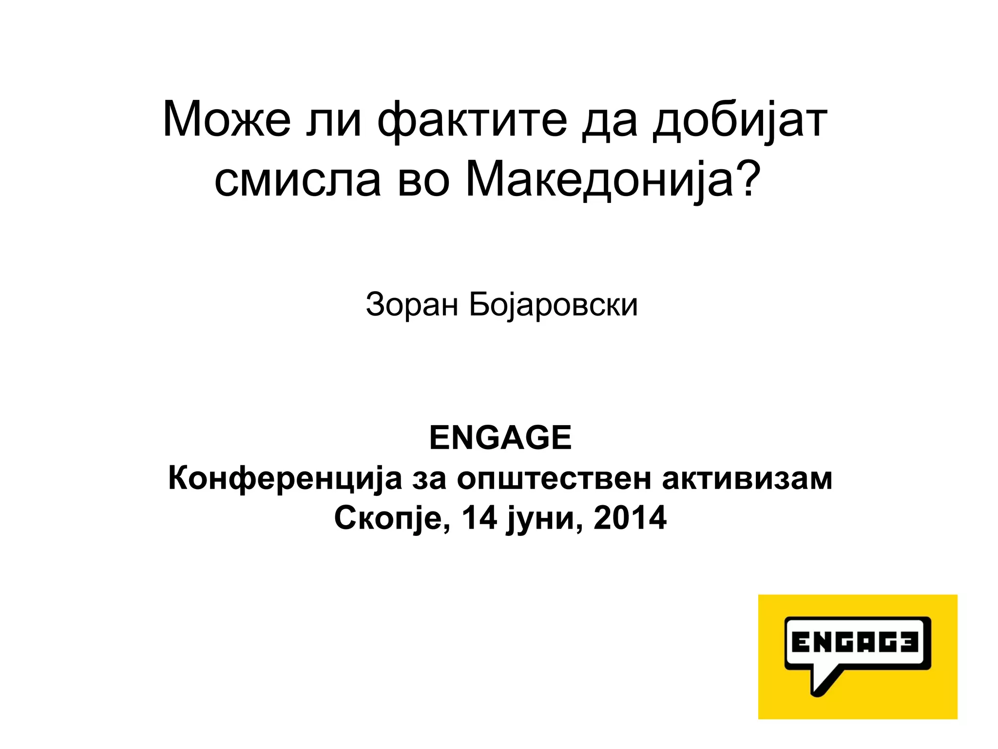 Идеализација на хактивизмот - Виктор Арсовски - ENGAGE Зоран Бојаровски - Може ли фактите да добијат смисла во македонија