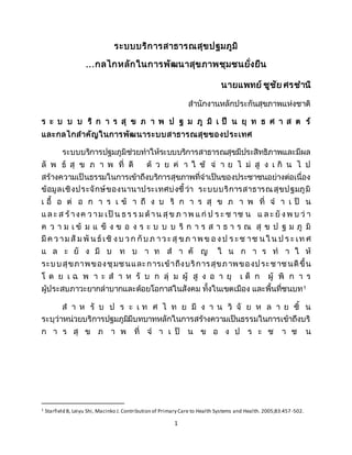 และกลไกสาคัญในการพัฒนาระบบสาธารณสุขของประเทศ