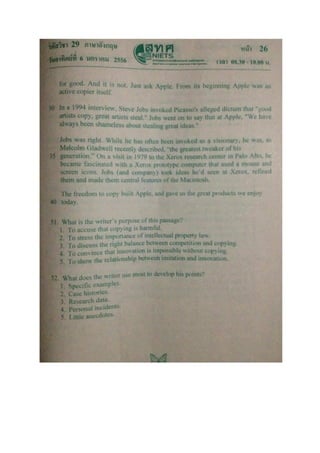 ข้อสอบพร้อมเฉลยภาษาอังกฤษ
