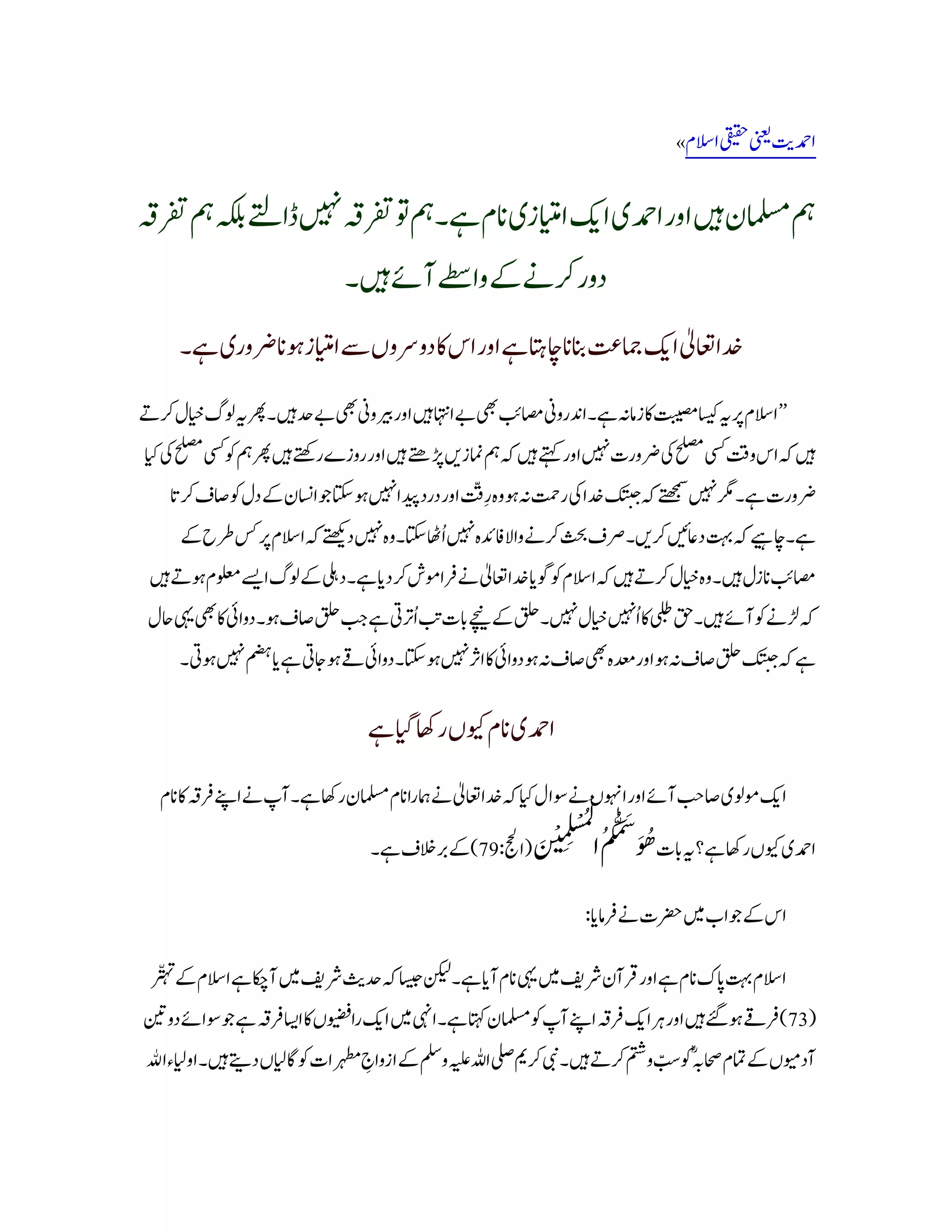 ہم مسلمان ہیں اور احمدی ایک امتیازی نام ہے