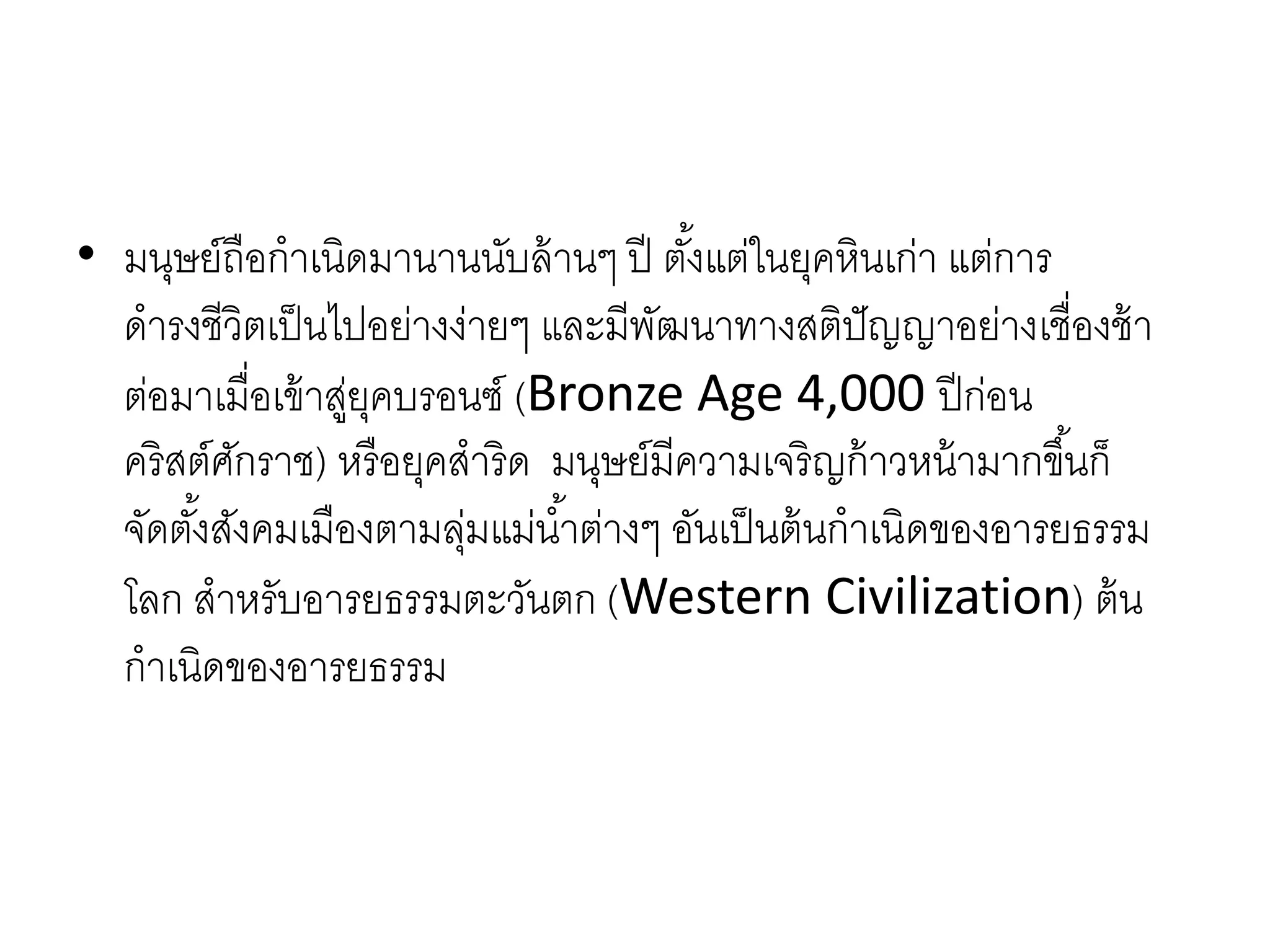 • มนุษย์ถือกำเนิดมำนำนนับล้ำนๆ ปีตั้งแต่ในยุคหินเก่ำ แต่กำร
