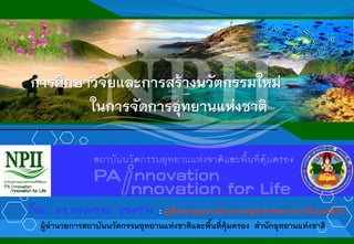 การศึกษาวิจัยและการสร้างนวัตกรรมใหม่ในการจัดการอุทยานแห่งชาติ โดย ดร.ทรงธรรม สุขสว่าง ผู้เชี่ยวชาญเฉพาะด้านการอนุรักษ์ทรัพยากรป่าไม้และสัตว์ป่า : ผู้อำนวยการสถาบันนวัตกรรมอุทยานแห่งชาติและพื้นที่คุ้มครอง กรมอุทยานแห่งชาติ สัตว์ป่าและพันธุ์พืช