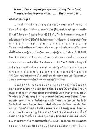 Similar to โครงการพัฒนาการดูแลผู้สูงอายุระยะยาว(ตัวอย่าง)