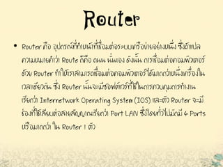• A routerisa device that forwards data packets between computer networks.
