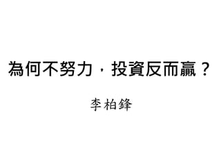 賺100元,就是市場的平均報酬 等於指數的報酬