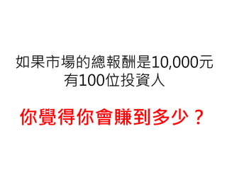 如果市場的總報酬是10,000元 有100位投資人 你覺得你會賺到多少?