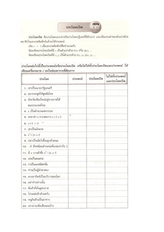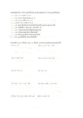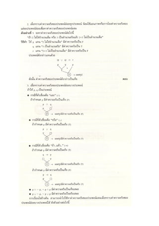ตารางค่าความจริง การบอกลาดับของการกระทาระหว่างประพจน์จาใช้วงเล็บในการบอกลาดับการทางาน ถ้ามี