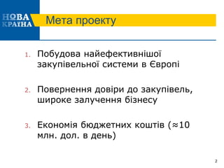 9-го липня група "Прозорі Закупівлі" Громадянської Платформи "Нова Країна" представила свій концепт реформування системи державних закупівель в Україні Президенту - Петру Порошенку.