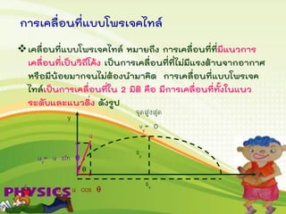 1. เขียนรูปการเคลื่อนที่แบบโพรเจคไทล์ และปริมาณการเคลื่อนที่