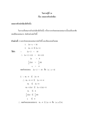 แบบฝึกทักษะที่ 20 เรื่อง อสมการตัวแปรเดียว 1.