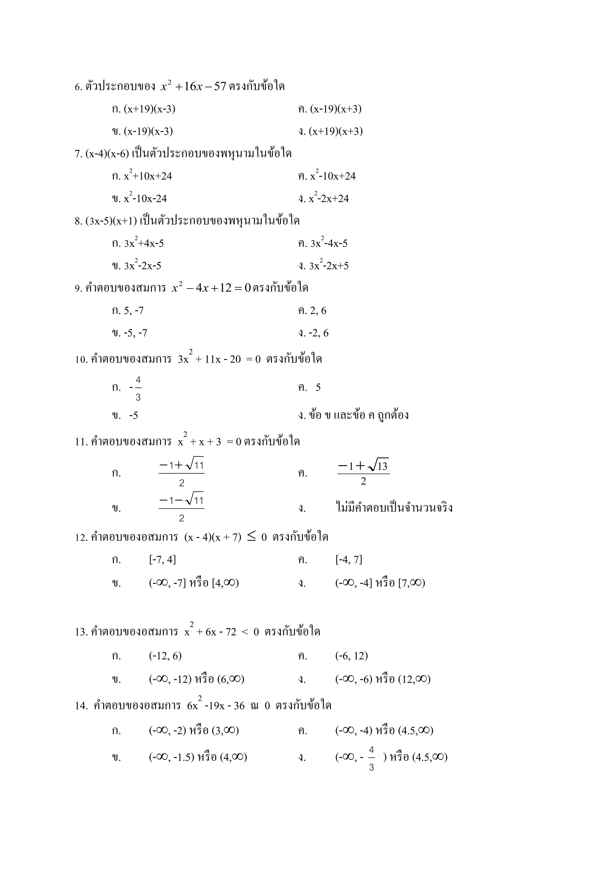 2. จานวนจริง a, b, c ในข้อใดต่อไปนี้ที่แสดงว่าข้อความ