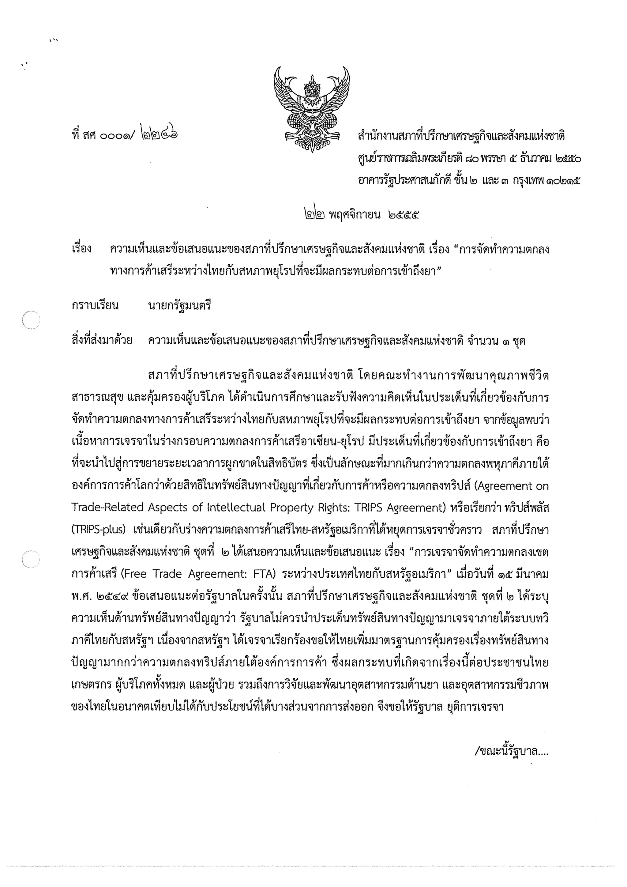 การจัดทำความตกลงทางการค้าเสรีระหว่างไทยกับสหภาพยุโรปที่จะมีผลกระทบต่อการเข้าถึงยา
