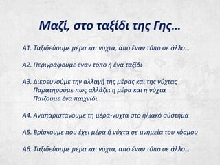 Σειρά από βιωματικά εργαστήρια, από τα οποία τα πρώτα, που σχετίζονται με το φαινόμενο της «μέρας-νύχτας», πραγματοποιήθηκαν για παιδιά ηλικίας 10-12 στις 14 Φεβρουαρίου 2014 στο χώρο του «Δικτύου για τα Δικαιώματα του Παιδιού» και για μαθητές Στ’ Δημοτικού στις 10-11 Ιουνίου 2014 στο Δημοτικό Σχολείο Φιλοθέης. Χρησιμοποιήθηκε χαμηλού κόστους εξοπλισμός: ταμπλέτες 10" με Andoid 4.2 (κάτω των 200 ευρώ).