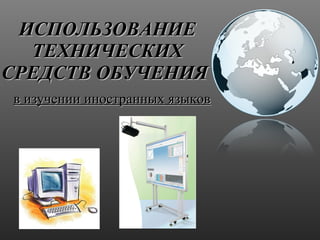 Документ обсуждает использование технических средств обучения (ТСО) в учебном процессе по иностранным языкам, акцентируя внимание на мультимедийных системах и дистанционном обучении. Он подчеркивает важность адаптации ТСО к индивидуальным потребностям учащихся и эффективности интеграции новых технологий для улучшения образовательных результатов. В документе также рассматриваются различные примеры и методы обучения, включая аудирование и использование электронных учебников.