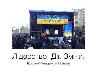 Відкритий університет майдану - проект, який народився в грудні 2013 року на майдані і переріс у всеукраїнський освітній рух з різноманітними продуктами, що змінює Україну на краще через підтримку становлення громадянського суспільства.