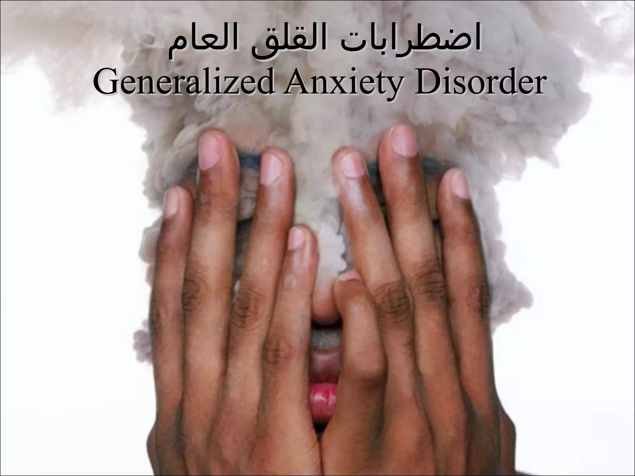 القلق هو رد فعل نفسي وجسدي طبيعي لكن عندما يصبح مفرطًا يؤدي إلى اضطرابات مثل اضطراب القلق العام، حيث يشعر المصاب بتوتر مستمر وأعراض جسدية ونفسية. تشمل العوامل المساهمة الوراثة، الجنس، الشخصية، والضغوط النفسية، ولا يوجد سبب محدد للقلق. تتضمن النظريات المختلفة في تفسير القلق أسبابًا تتراوح من العوامل البيئية إلى الصدمات النفسية.