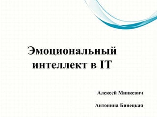 Документ обсуждает важность эмоционального интеллекта (EQ) в сфере IT и управления. Авторы Алексей Минкевич и Антонина Бинецкая подчеркивают, что EQ включает способность управлять своими эмоциями, взаимодействовать с другими и адаптироваться к изменениям. Они предлагают различные методы развития EQ для руководителей и команды, включая личностные тренировки и практические советы.