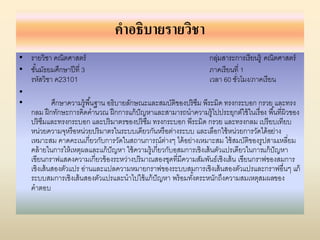 รหัสวิชา ค23101 เวลา 60 ชั่วโมง/ภาคเรียน