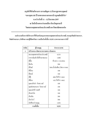 สรุปค่าใช้จ่ายโครงการ ธรรมสัญจร 12