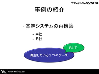 事例の紹介 ・ 基幹システムの再構築 - A社 - B社 BUT.. 類似している2つのケース