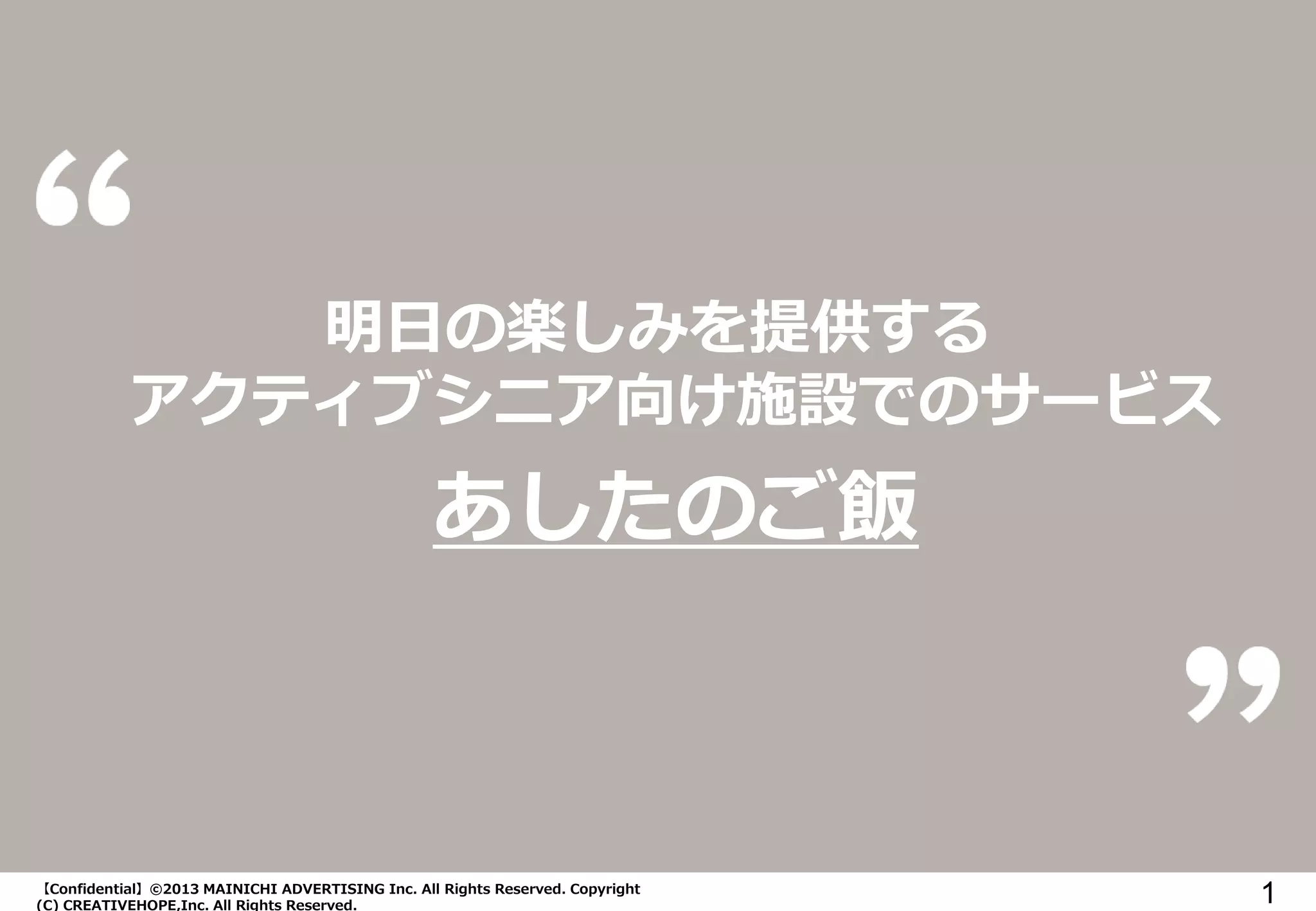 アクティブシニアの方に明日の楽しみを提供する企画です。