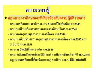 ระเบียบ กฎหมายอื่นๆที่ควรรู้ แล้วแต่ อ.ก.ค.ศ.กําหนด