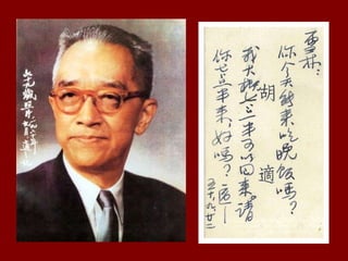 三十八年三月,先生已決定赴美,曾來臺灣一行,並在臺北中山堂作了一次公開的演講,題為「中國文化的自由傳統」。一週後回上海趁船赴美。後來四十一年十一月返臺北講學,留住約兩個月。四十三年二月,因出席國民大會,又返臺北一次。 四十六年十一月,中央研究院改選院長,先生當選。先生於四十七年四月八日回到臺北; 四月十日就職。 四十八年二月,國家長期發展科學委員會成立。先生常覺得國內教書的生活太清苦;他以為國家最重要的事情是教育;而要教育辦得好,必須教師能安心教書。因此,他每次從美國回國時都向教育當局建議提高教員的待遇。四十五年吳大猷先生回國講學時,曾擬了一個發展科學教育的草案。先生接長中央研究院,遂修正吳案而向政府建議成立國家長期發展科學委員會。 先生任中華教育文化基金董事會的董事、三十多年如一日,可以說是由於以教育救國的一念所鼓勵的。我國自有學術和文化的基金會以來,中華教育文化基金會可以說是一個模範的組織。這得力於先生人格的影響不少。現在的國家科學委員會,則已隸屬於行政院。我們相信,先生公正無私的精神,將永為國內公私各種教育文化基金會的主持人所矜式! 四十九年七月九日,先生赴美出席西雅圖華盛頓大學中美學術合作會議。在這個會議裏,先生有一個重要的演講,題為「中國的傳統和將來」( The Chinese Tradition and the Future )。會後赴東美;於四十九年十月二十二日返回臺北。從此以後,先生便沒有再離開祖國。